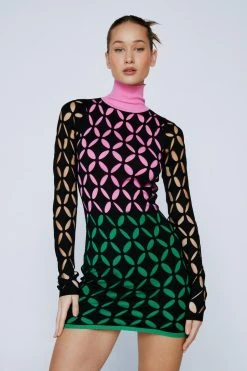 Asymmetric Hem Ribbed Knitted Mini Dress