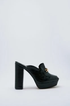 Faux Croc Chain Platform Mules
