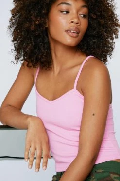 Sweetheart Neckline Textured Rib Cami Top