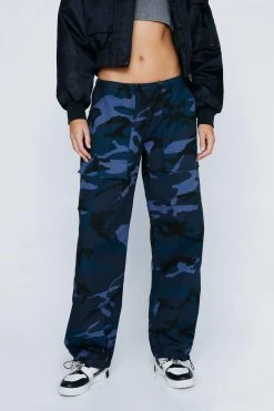 Washed Camo Mid Rise Dual Hem Cargo Pants