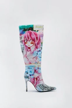 Wide Fit Anime Print Knee High Stiletto Boots