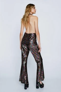 Zig Zag Sequin Halter Neck Plunge Jumpsuit