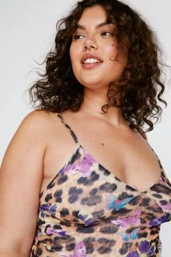 Plus Size Butterfly Leopard Print Mesh Cami Top