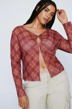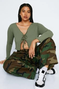 Plus Size Lettuce Edge Tie Detail Long Sleeve Top