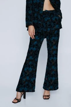 Floral Flocked Tie Front Detail Long Sleeved Top