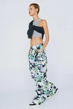 Nylon Camo Print Strap Detail Dual Hem Cargo Pants