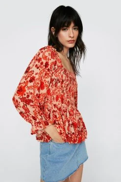 Paisley Print Shirred Smock Top