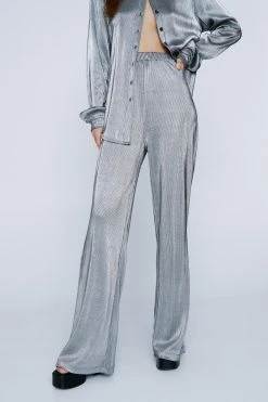 Metallic Plisse Wide Leg Pants