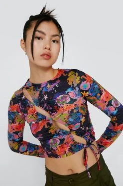 Dainty Floral Print Shirred Long Sleeve Blouse