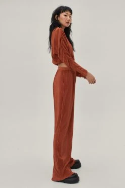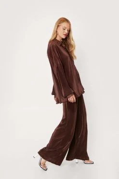 Plus Size Satin Contrast Piping Shirt And Pants Set