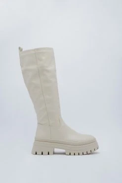 Faux Leather Buckle Detail Lace Up Biker Boots
