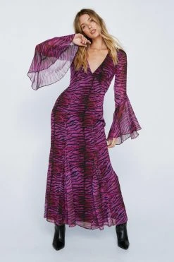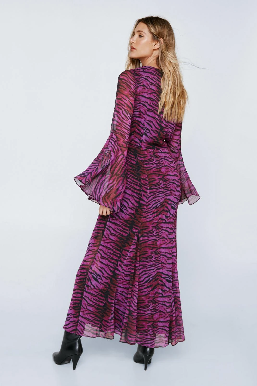 Wild night out. Look good dining, drinking, and dancing in our statement animal print chiffon maxi dress.