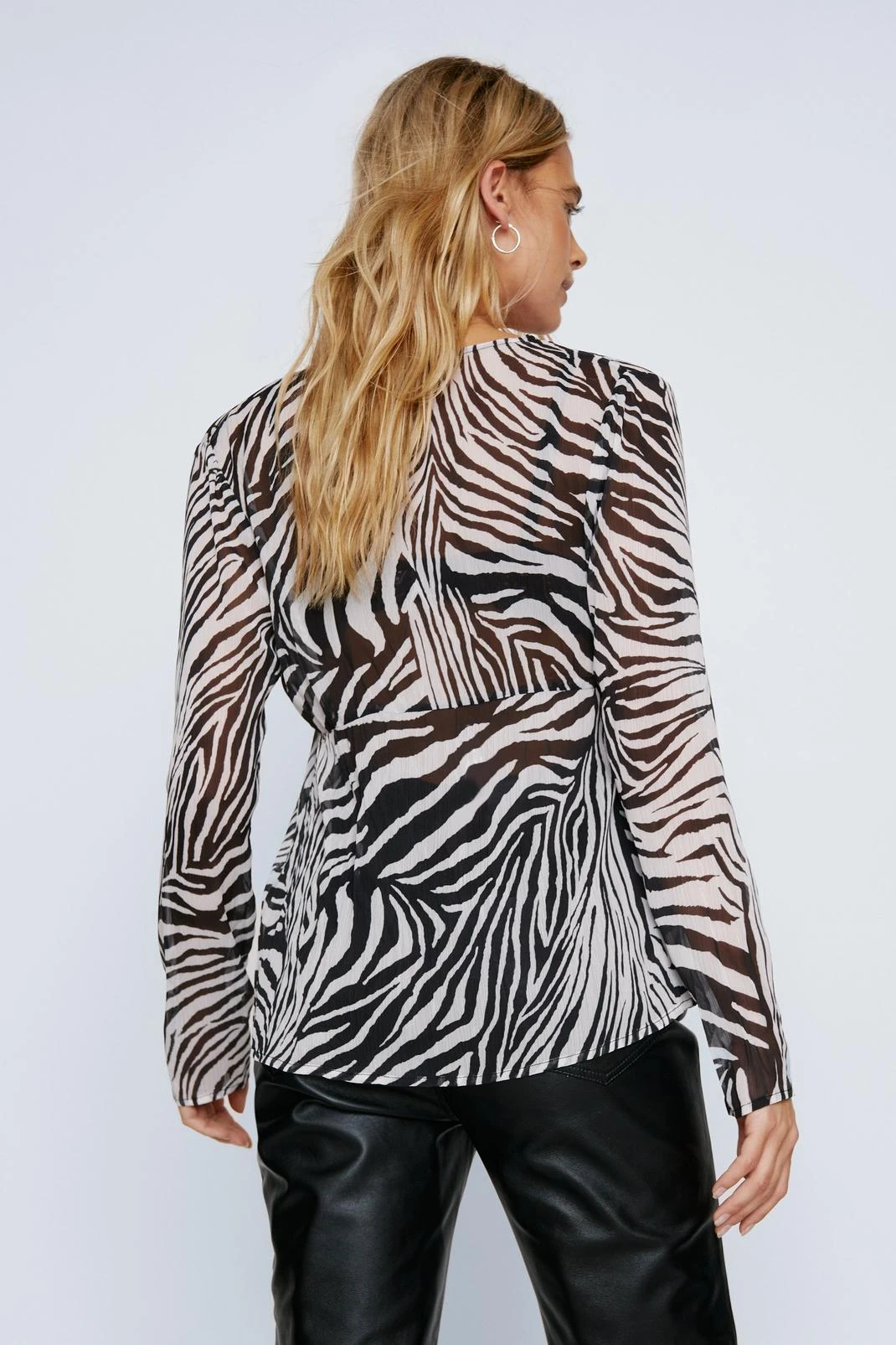 Leave her wild. Our zebra print tie front blouse is super cute and looks great when paired with any high waisted bottoms.