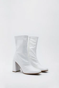 Step it up. Feel fierce in our sock boots, made in high quality faux leather, with comfortable chunky heels, and a minimal, sleek design. Pairs well with any of your outfits – literally. Style with mini skirts and dresses for a stepped up night out look, or with jeans for an elevated daytime look, perfect for wearing anywhere from the office, to gig nights, to happy hours and parties.