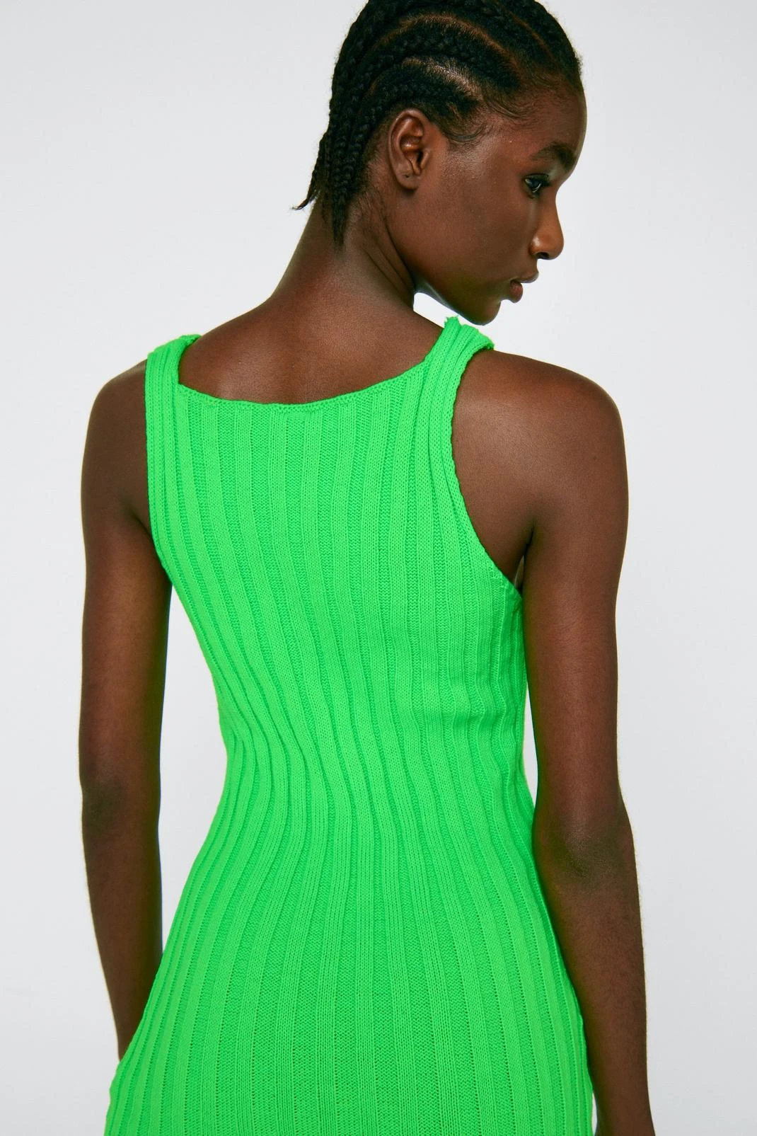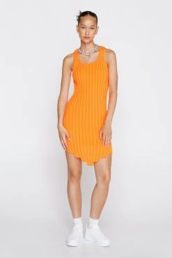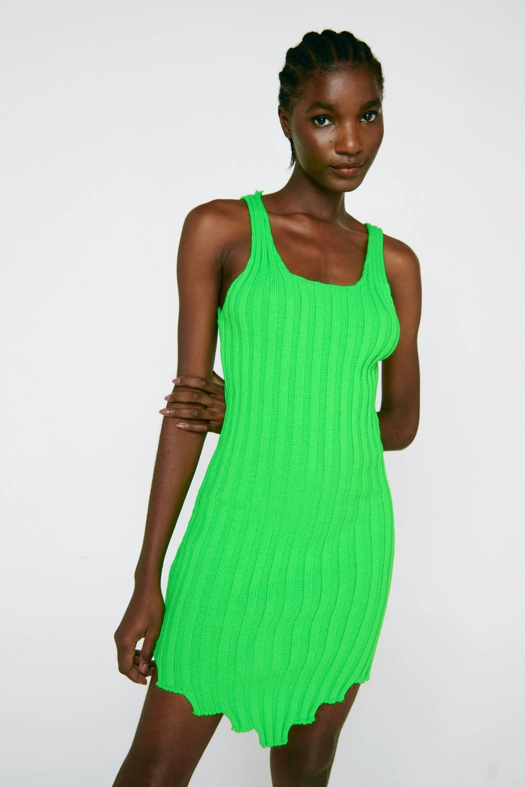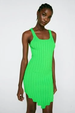 - Asymmetric Hem Ribbed Knitted Mini Dress