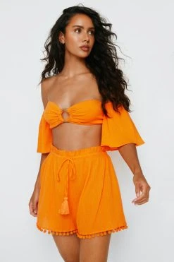 On the beach. Layer over your favorite bikini, and team with matching cover up shorts