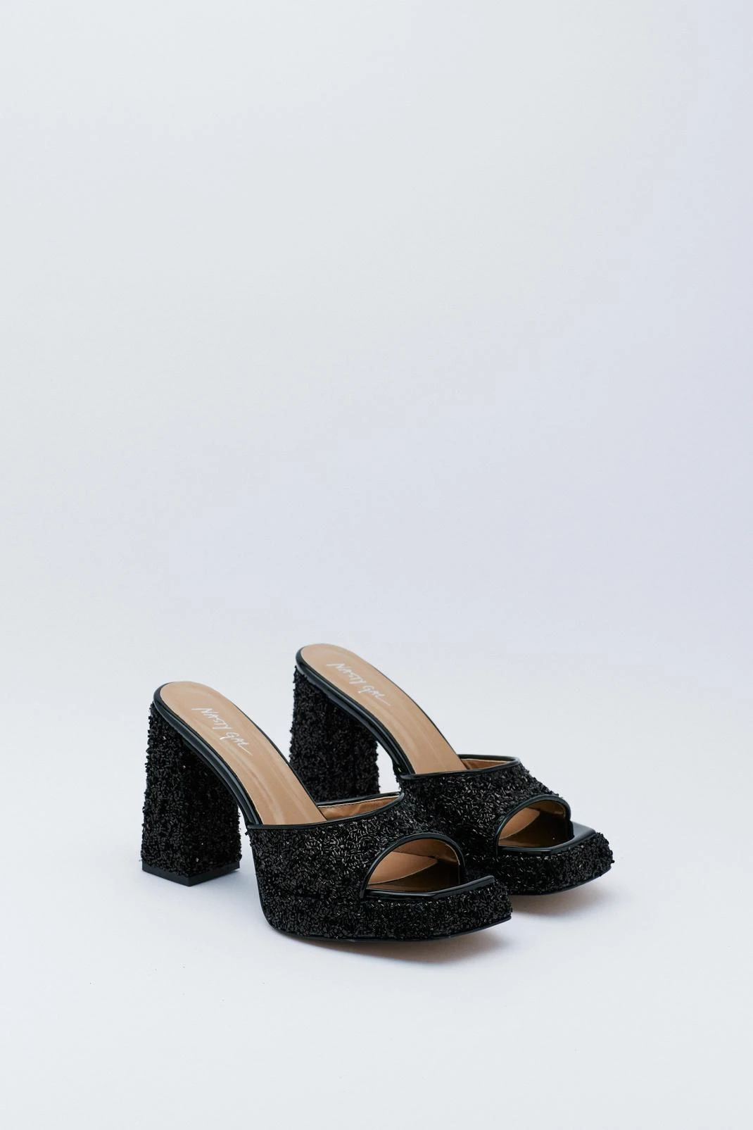 - Beaded Square Toe Platform Mules