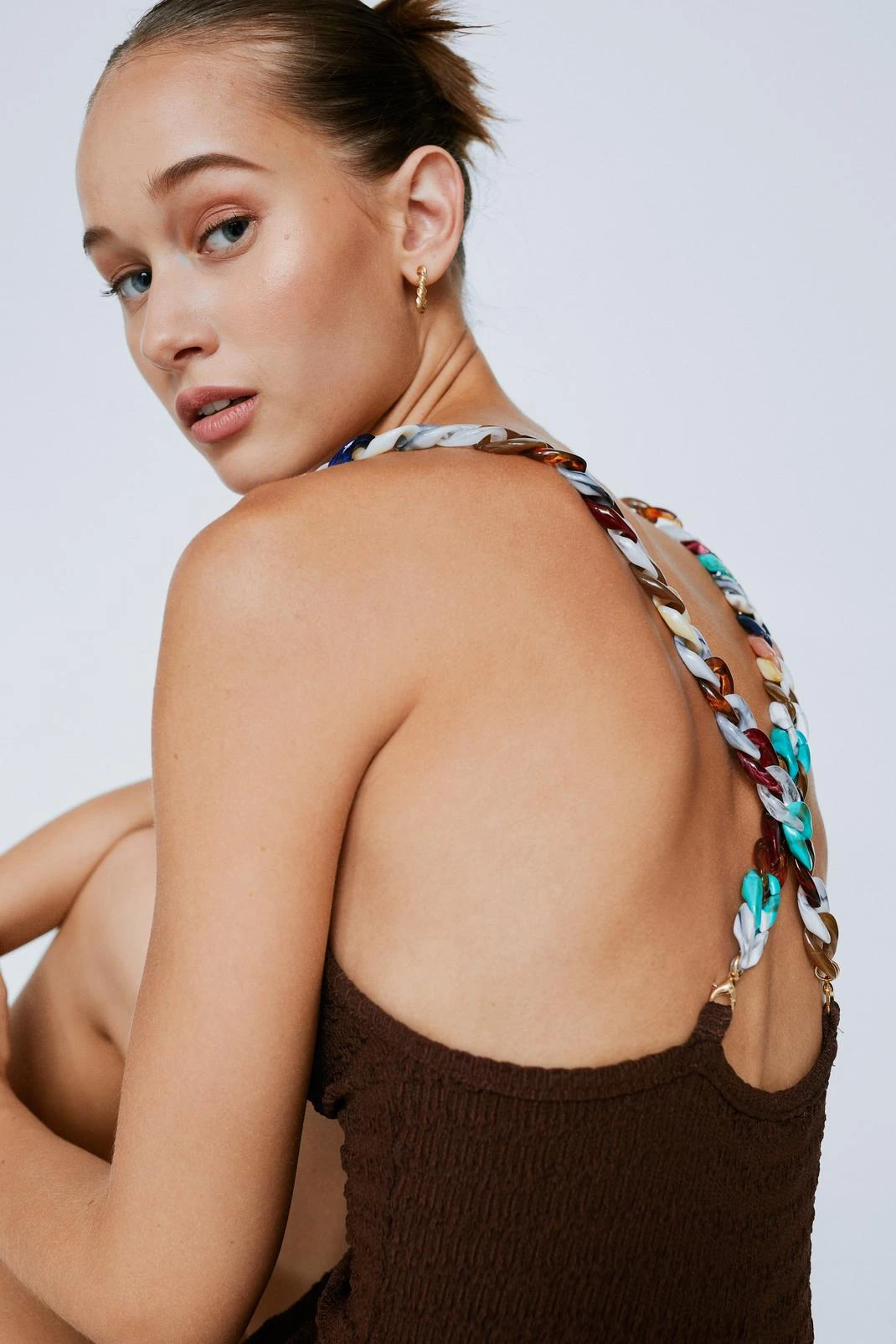 All chained up. Our chain strap mini dress puts a twist on the classic cowl neck dress, and will have you feeling flirty as you catch eyes. Style with strappy heels and your fave night out bag.