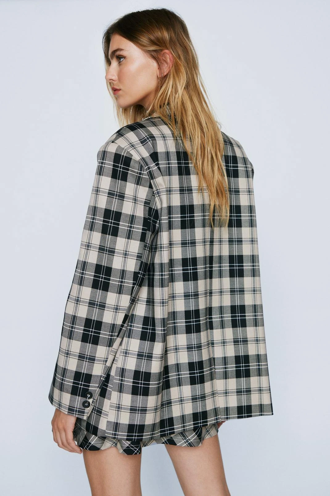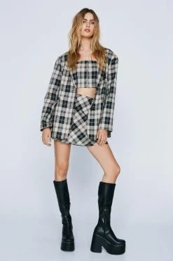 Boardroom to bar-hopping. Our plaid single breasted looks great teamed with knitwear and crop tops alike.