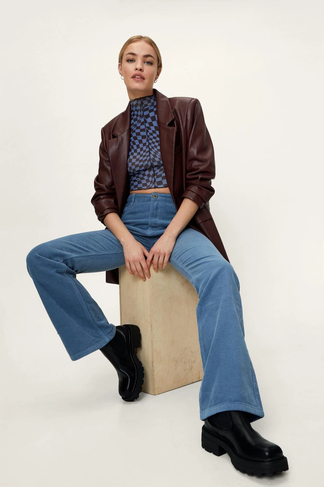 Laidback legwork. These pants come in robust corduroy and feature a fit and flare silhouette, high waistband with belt loops, concealed zip down fly closure, full length leg, and pull on design. A versatile piece to seamlessly integrate into your capsule closet. Wear yours with oversized blazers, playfully printed mesh, and cleated Chelsea boots.