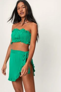 Crinkle Bandeau Frill Sarong Cover Up Set
