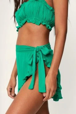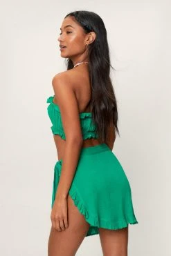 Crinkle Bandeau Frill Sarong Cover Up Set