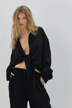 Crinkle Button Down Tie Front Cover Up Shirt