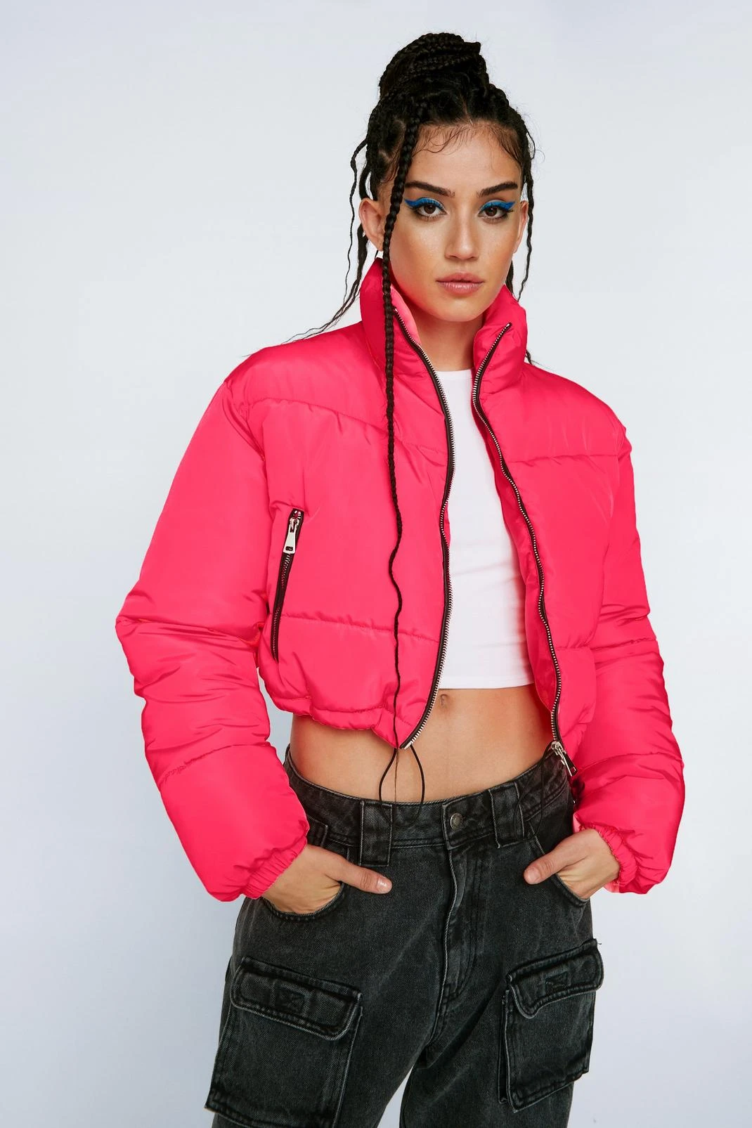 Zip it. Keep warm in the colder months with our cropped puffer jacket.