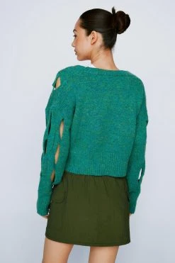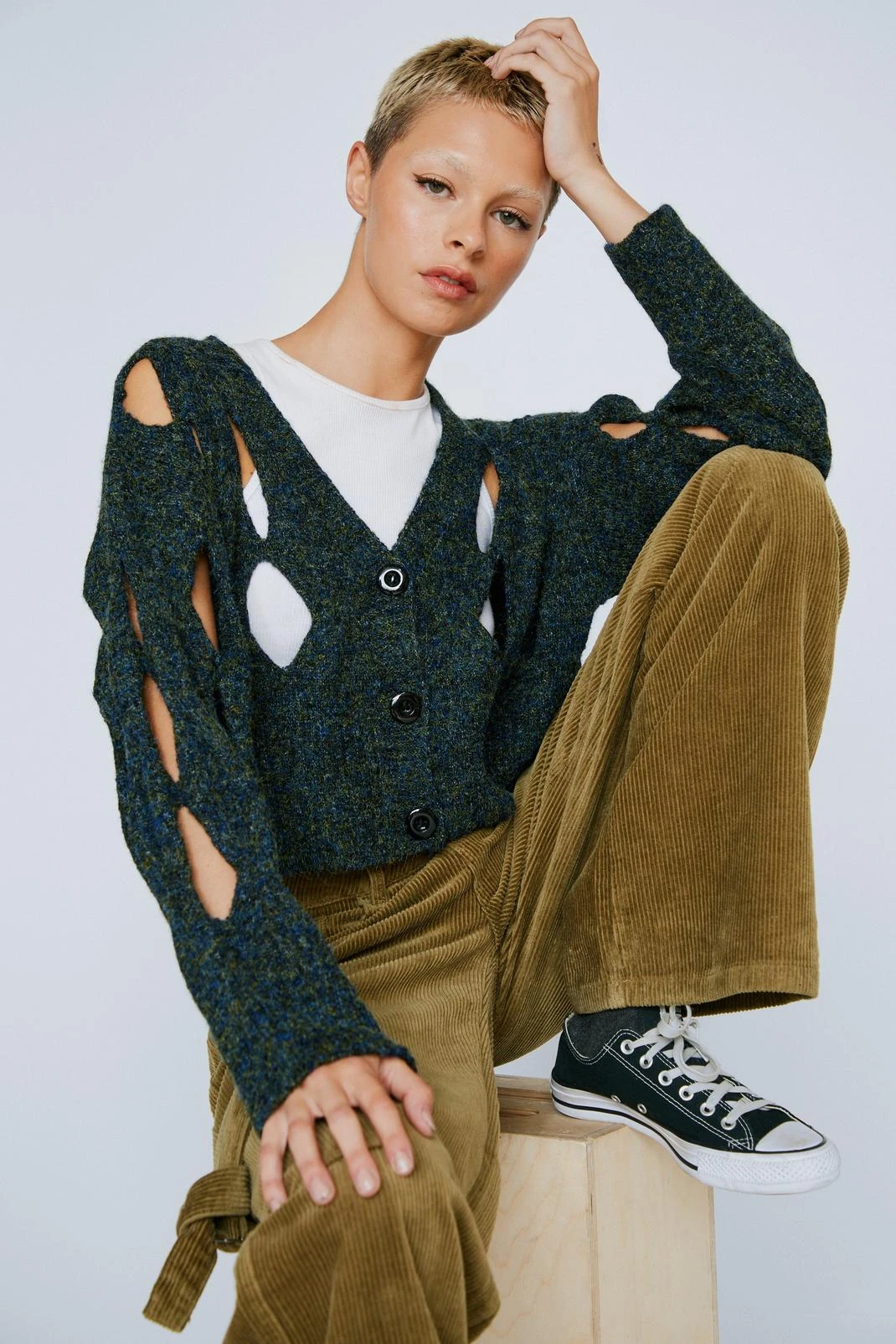Cut them off. Style our cut out cropped cardigan with a tank top and skirt for a cute comfy day look.