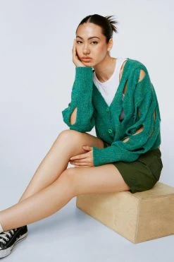 Cut them off. Style our cut out cropped cardigan with a tank top and skirt for a cute comfy day look.