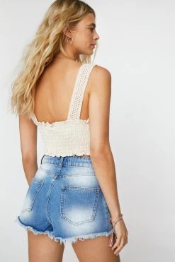 - Distressed Raw Hem Denim Shorts