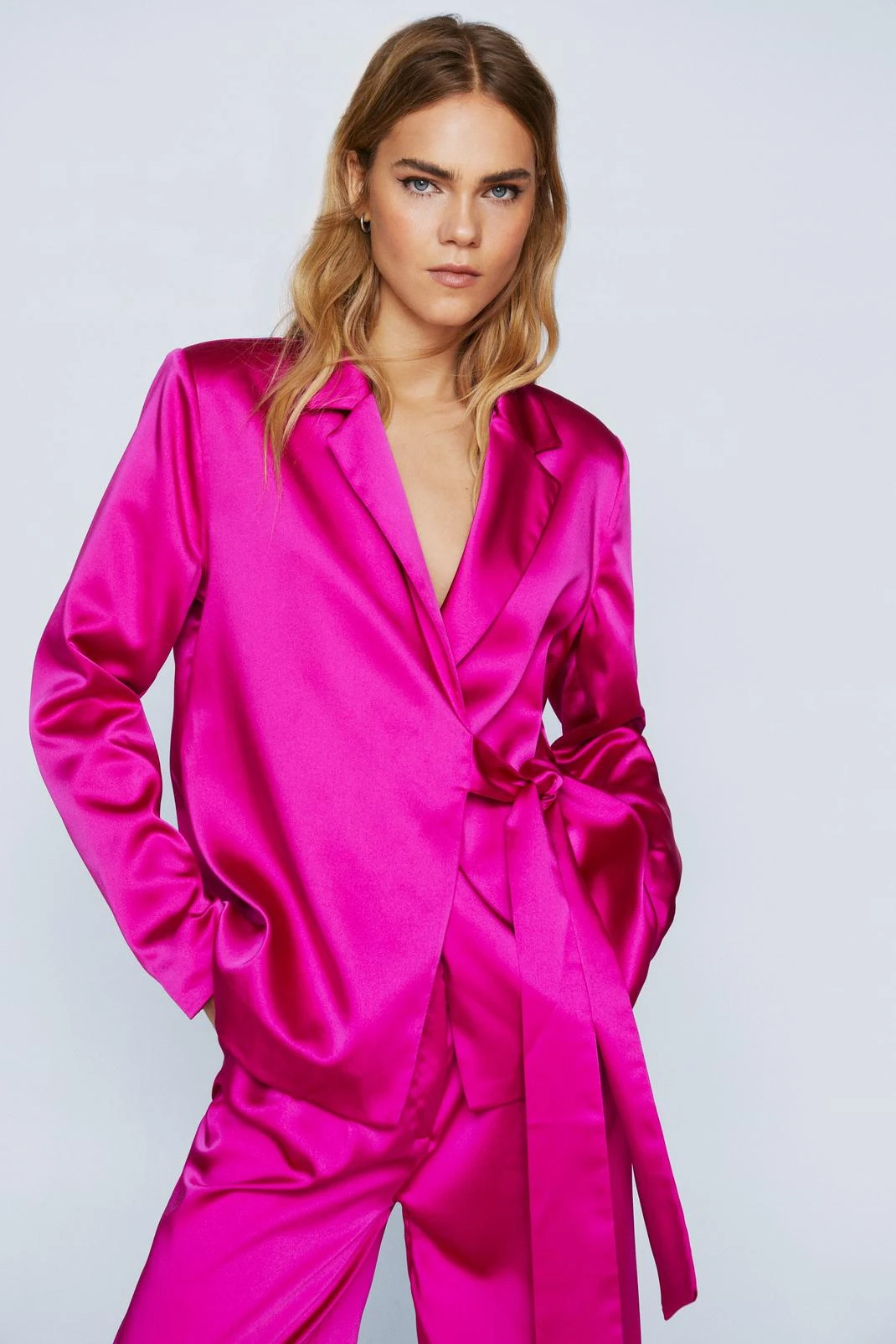 You’ve already got plans. Feel fierce in ourblazer, made in high quality satin fabric, with a flattering relaced fir and a unique tie waist fastening. Pair it with the matching pants and strappy heels for a look that will take you from wedding guest days to prom nights and upcoming occasions.