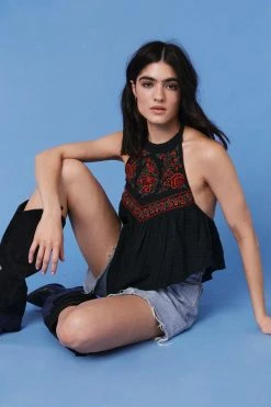 Embroidered Halterneck Sleeveless Top
