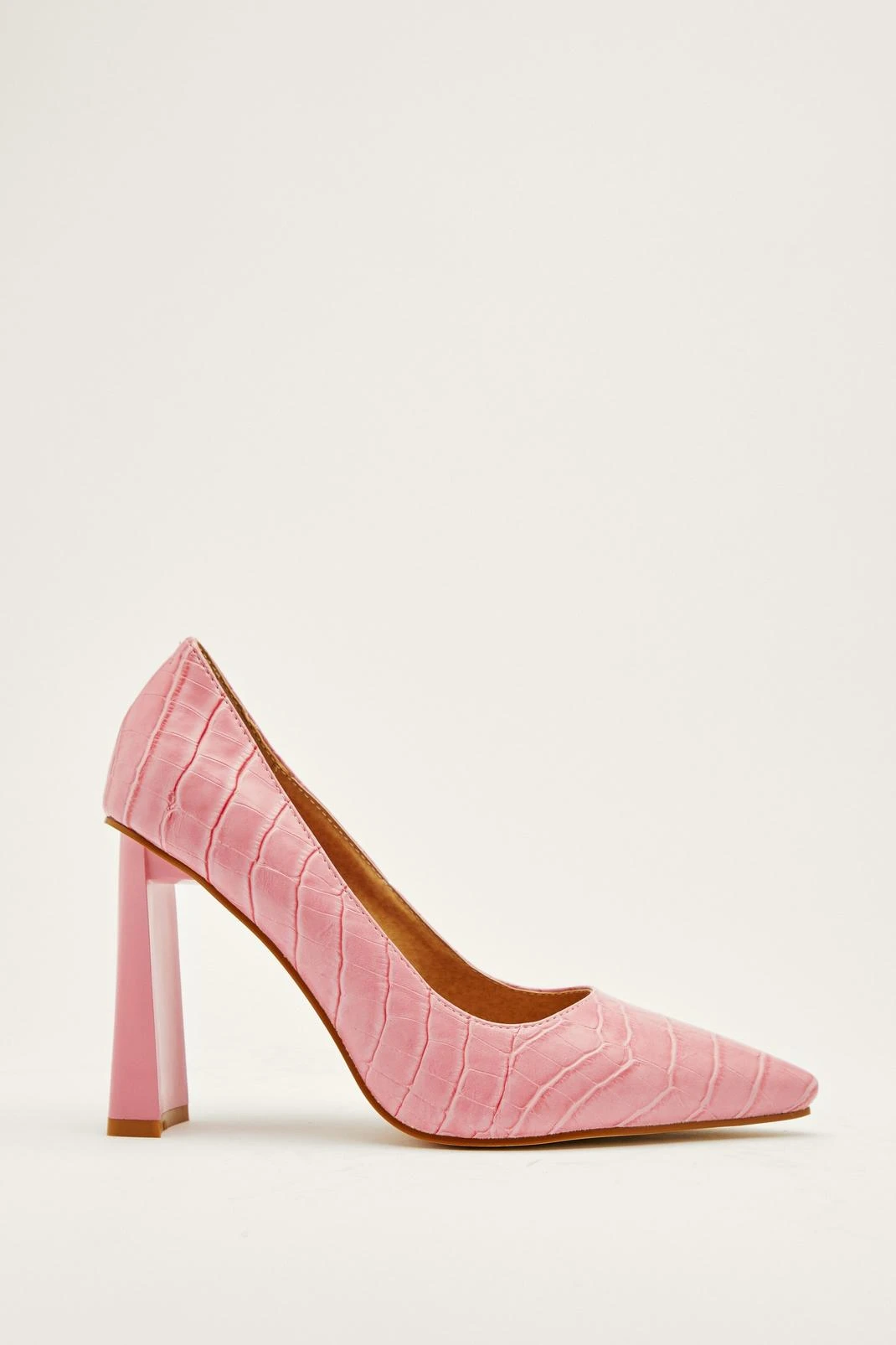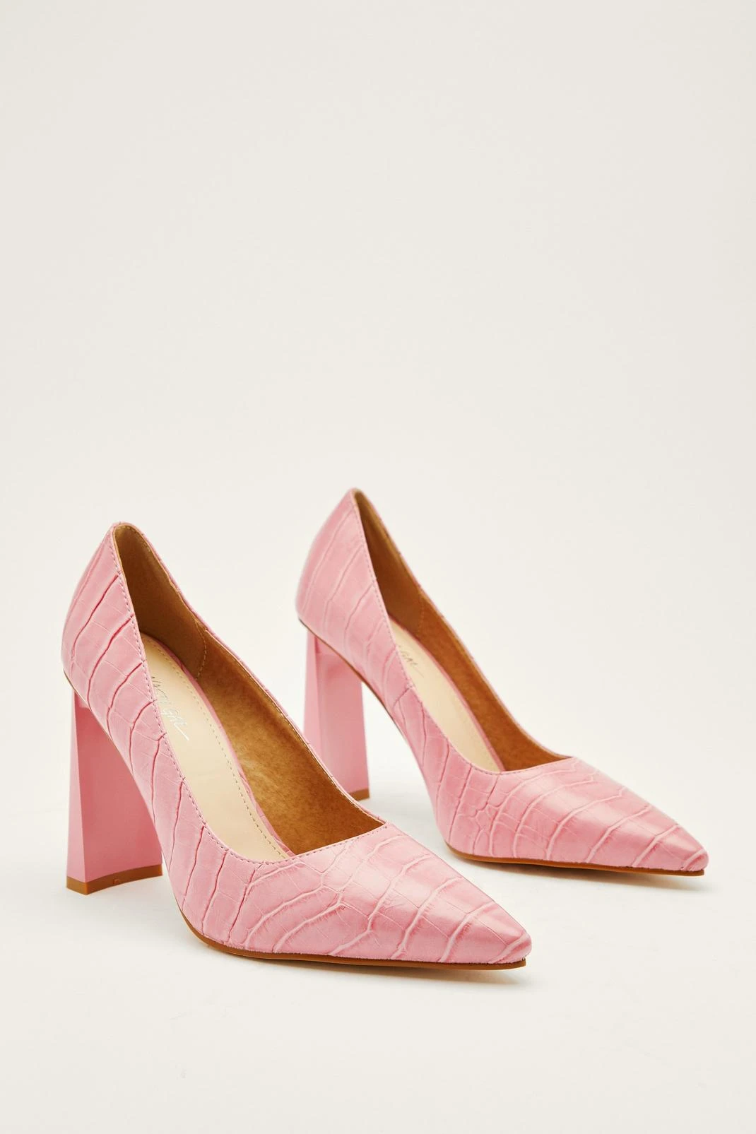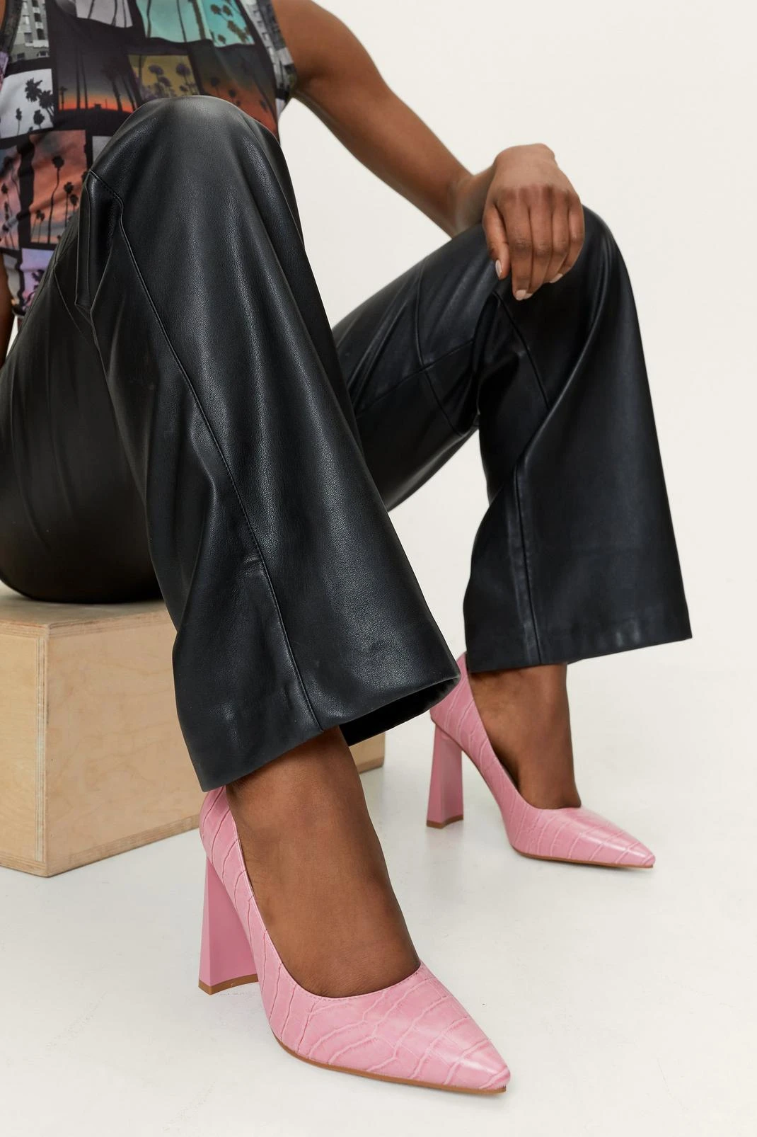 Holding court. These court heels feature a pointed toe and wide heel. Style with wide leg leather pants and a graphic T-shirt for the ultimate brunch outfit.