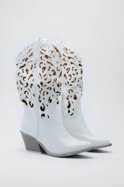 Faux Leather Baroque Knee High Cowboy Boots