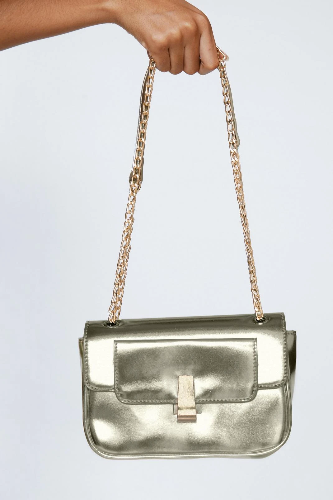 Heavy metallic. Go hands free at happy hour with our metallic cross body bag.