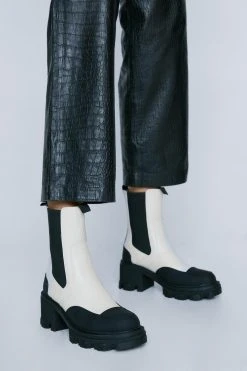 Boot camp. Our faux leather chunky chelsea boots are perfect for stomping around the city.