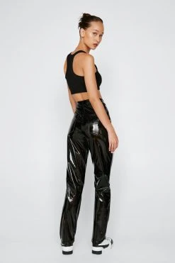 Shine on. Style our faux leather leggings with a crop top and oversized jacket for an elevated daytime outfit.