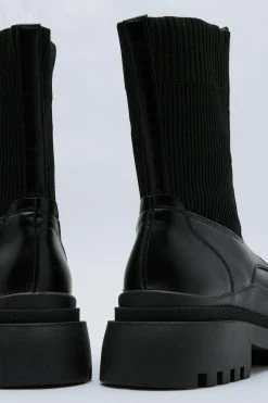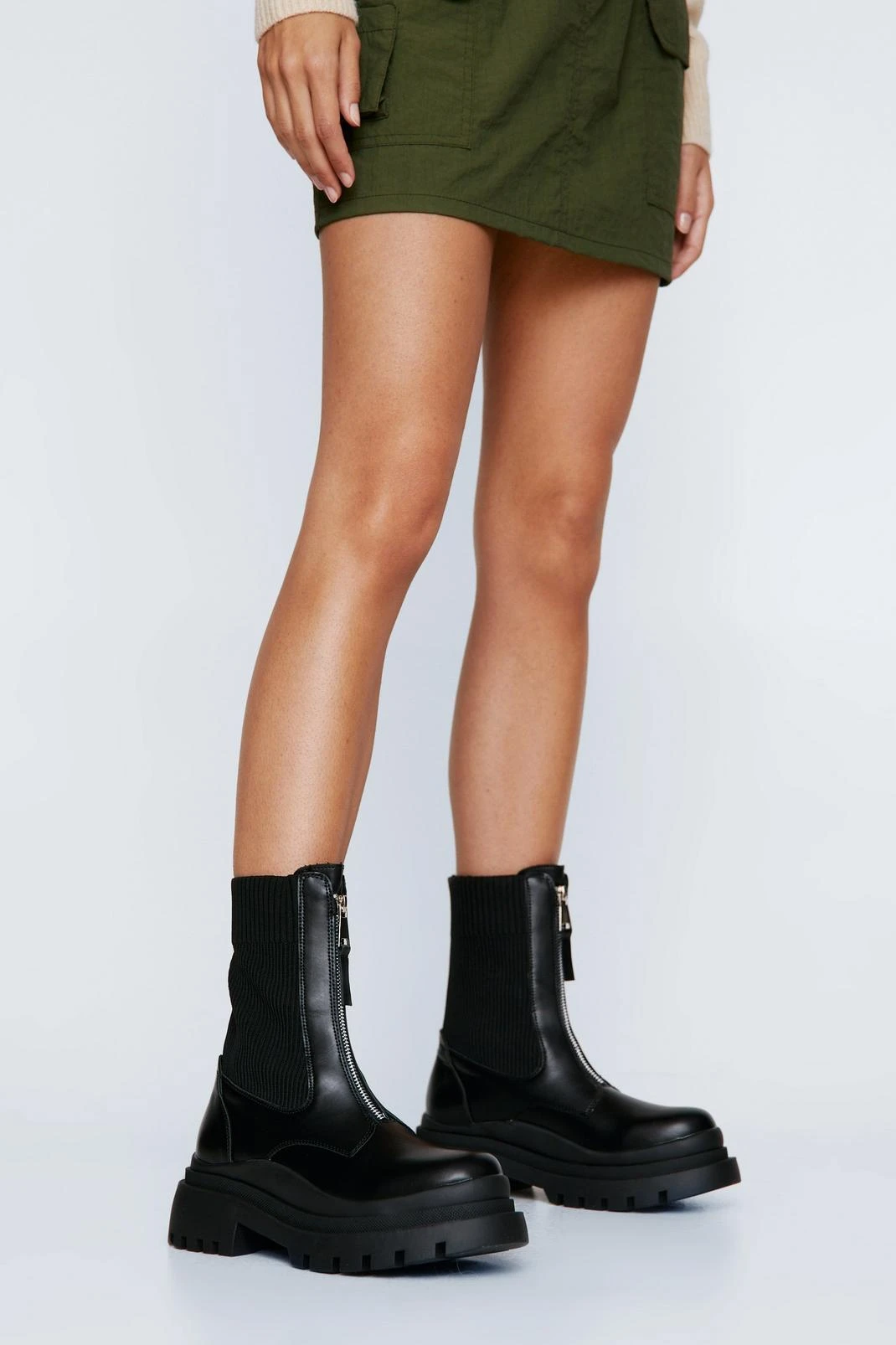 Zip it. Style our faux leather sock boots with a mini skirt or jeans for your new go-to F/W footwear.