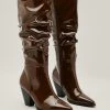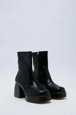 Fancy footwear. Feel confident when you step out in our chunky boots, with high quality faux leather fabric, statement chunky heels, and unique wood effect sole. Pairs well with jeans or skirts for an elevated look that will take you seamlessly from day to night, whether you’re going for dinner and drinks or happy hour and nearby dancefloors.