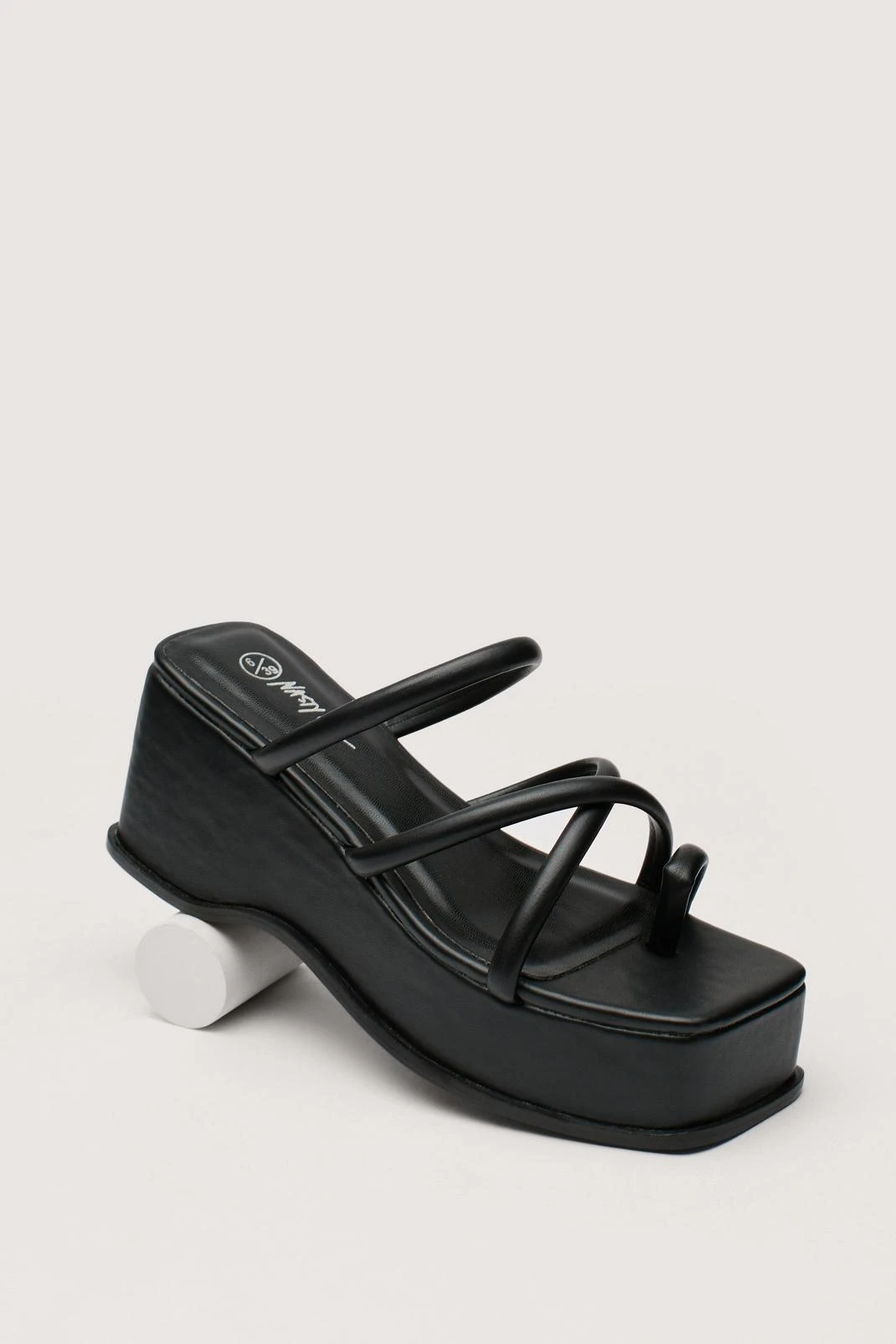 - Style: Faux Leather Strappy Flatform Mules