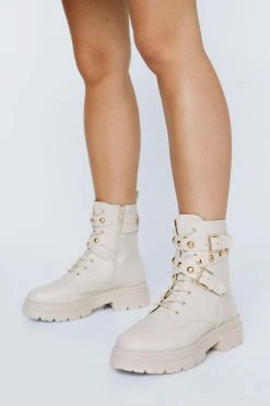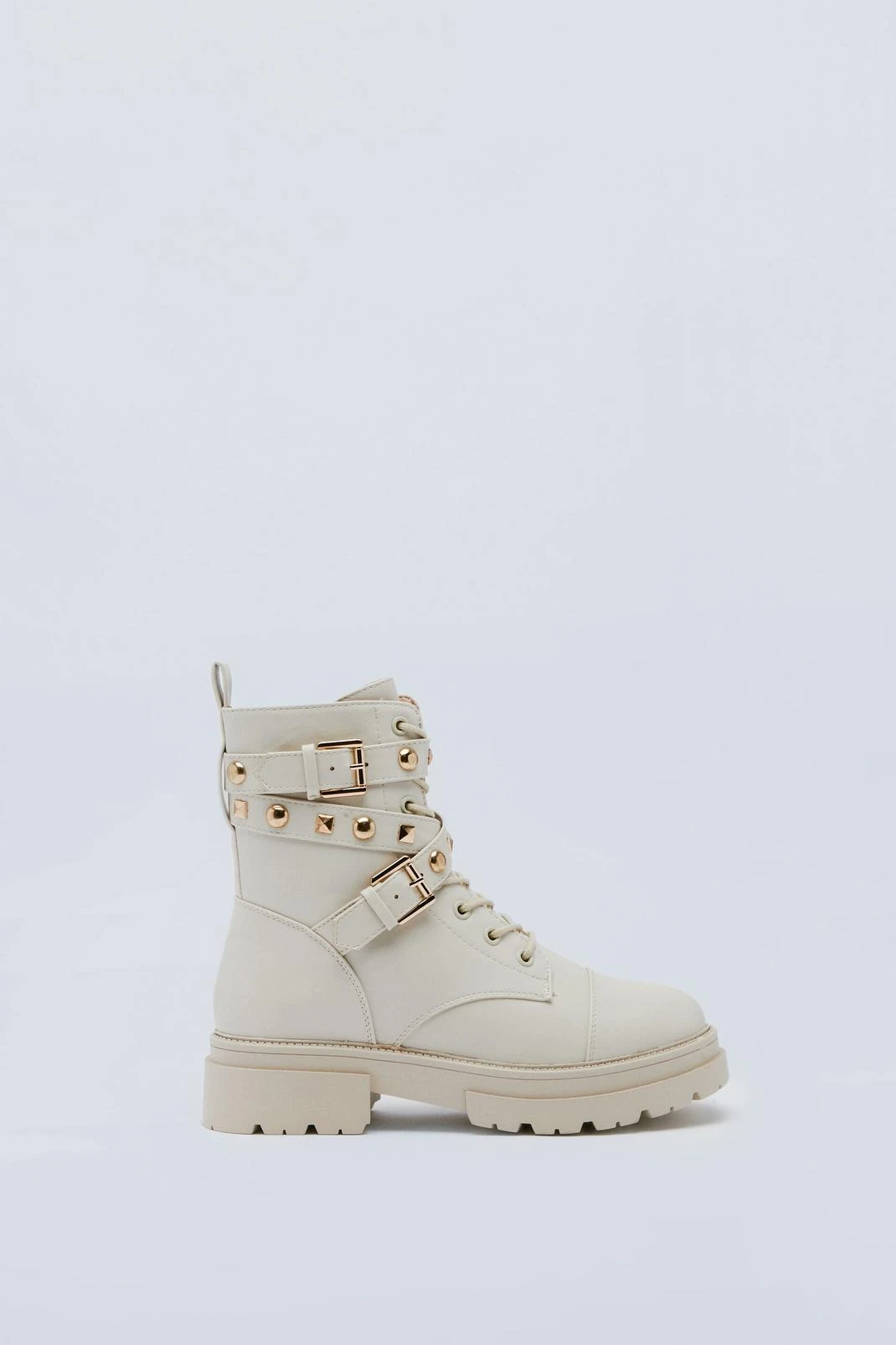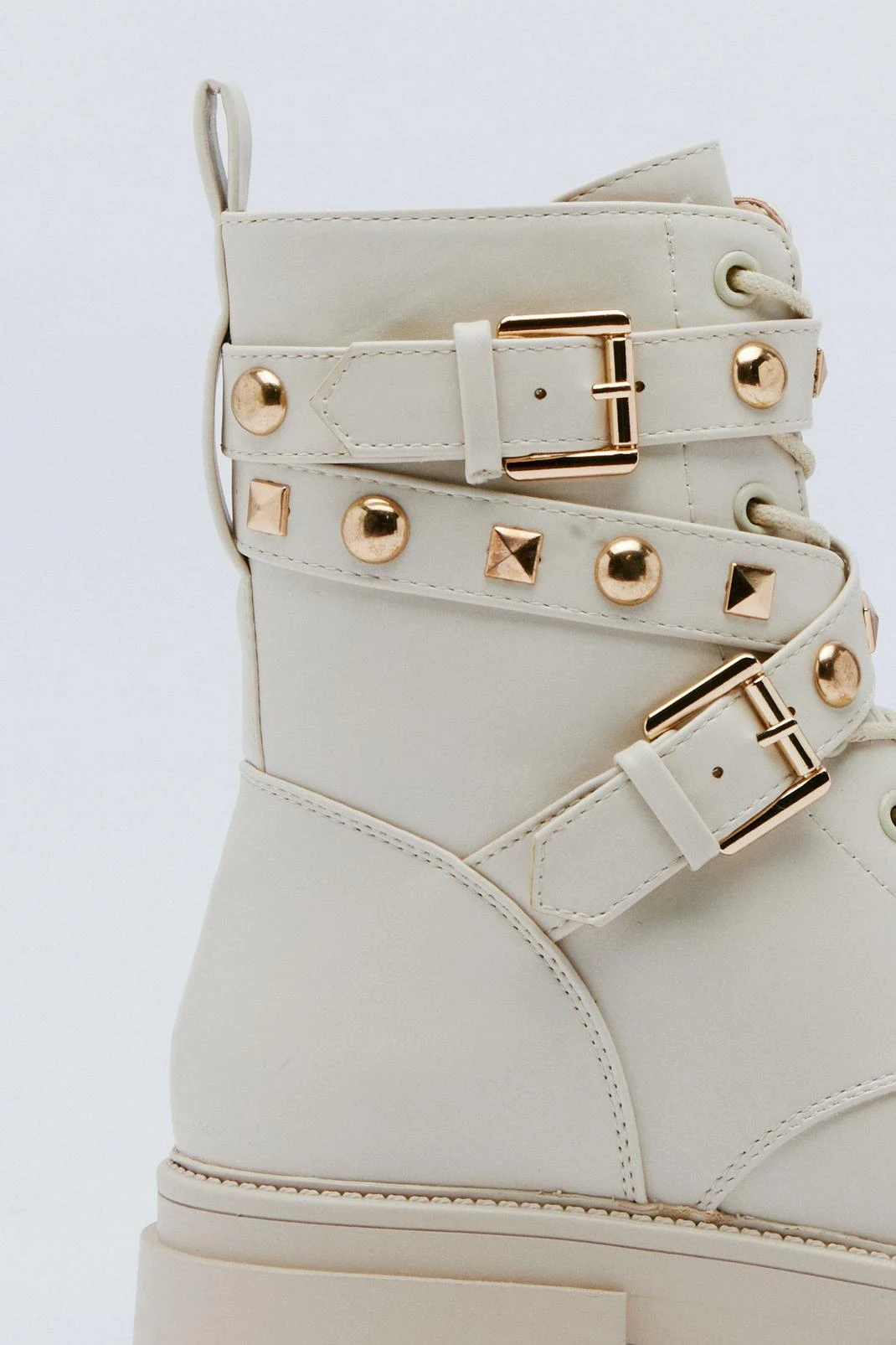 Fancy footwork. Feel fierce in our faux leather hiker boots, made with high quality faux leather, and featuring chunky soles and metallic stud detailing. Wear them out on hikes, to festival weekends, or with jeans for a casual day out look.