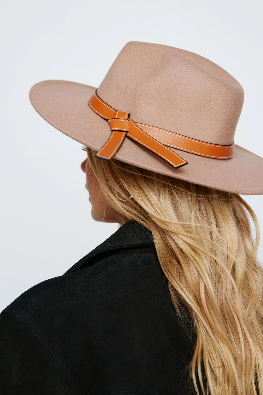 Leave your hat on. Our fedora features a faux leather trim, wide rim, and quality build.