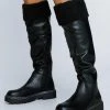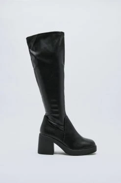 Elevated staples. Feel ready to seize the day in our knee high boots, made in high quality faux leather, with comfortable chunky heels, and a statement knee high length. Pairs well with your fave day out looks, perfect for festival weekends, gig nights, office days, and going from dinner to drinks.