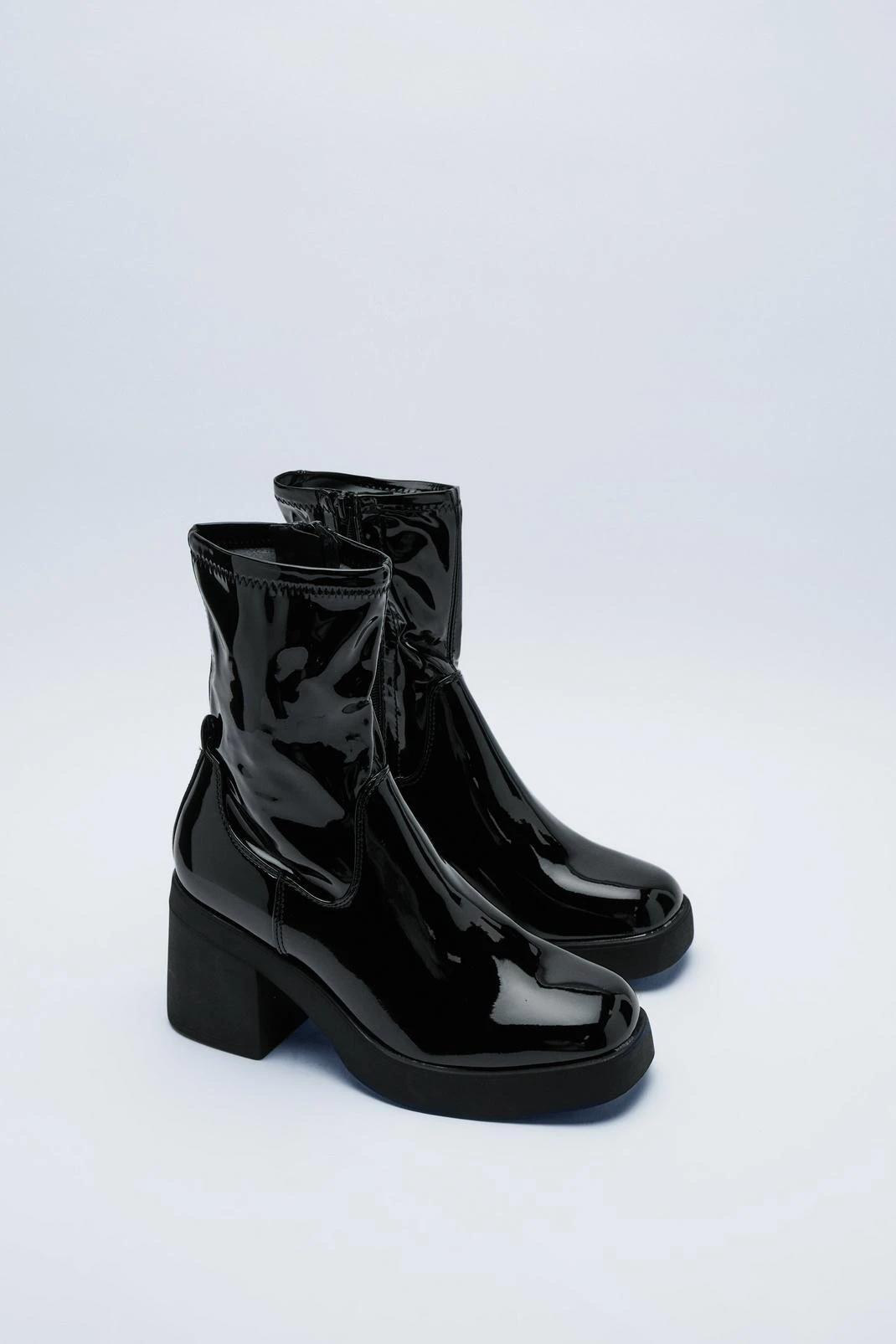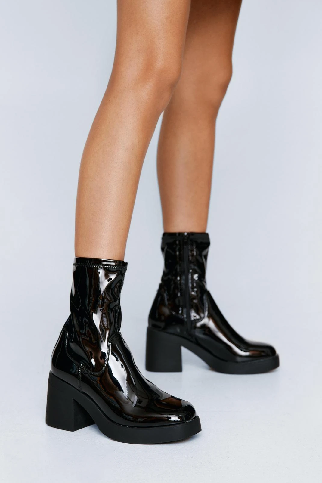Your new go-to boots. Venture stylishly outside with our faux patent leather platform boots.