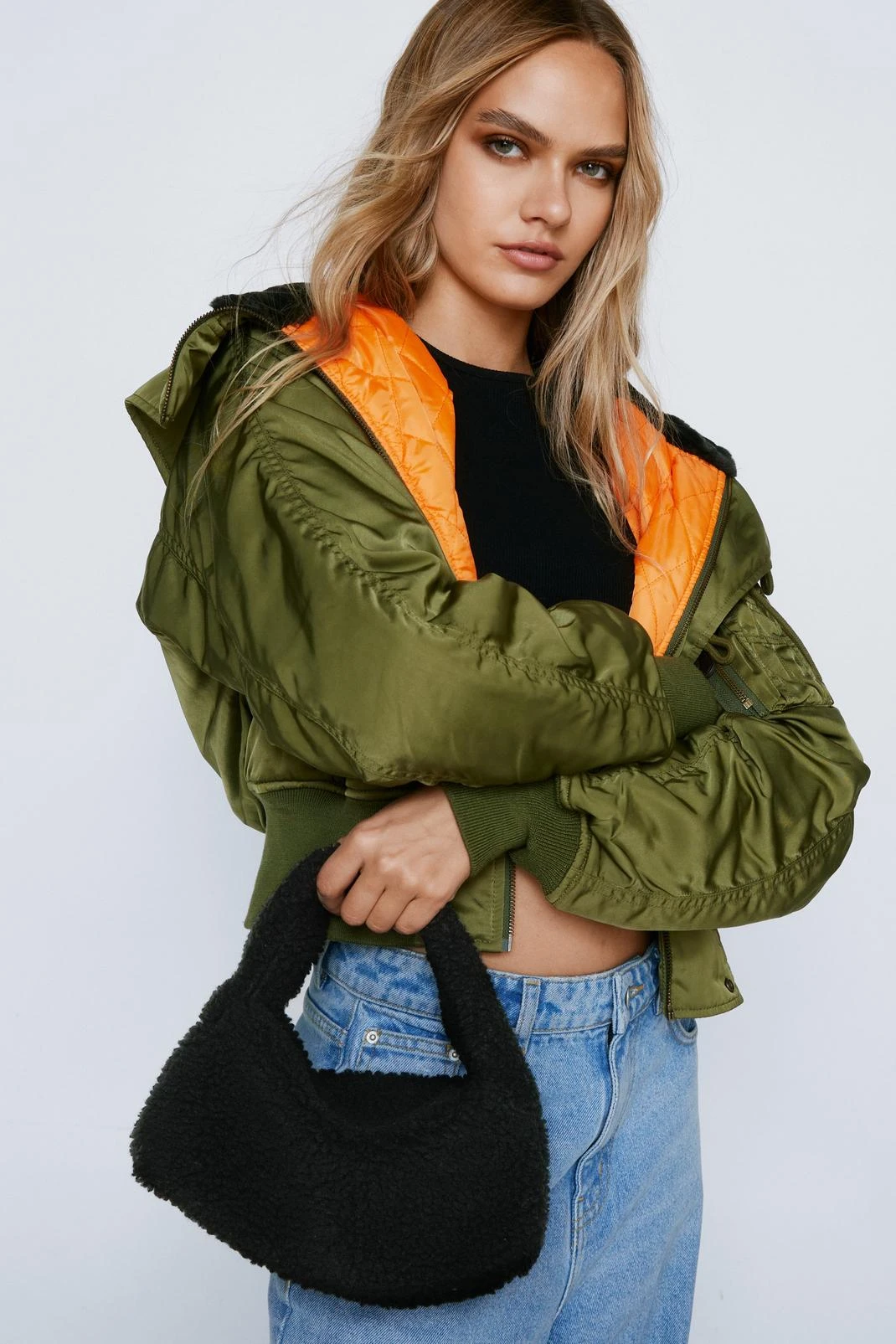 For carrying your keys. Faux teddy handbag, perfect for days out and casual drinks.