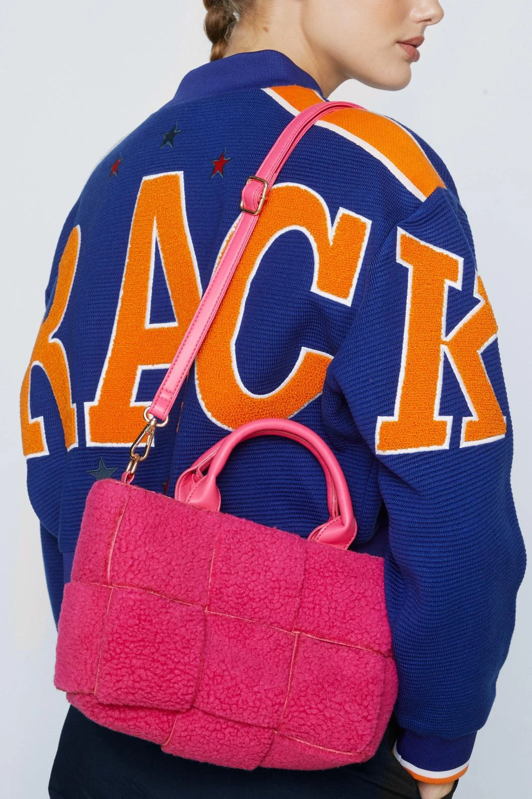 Borg with it. Our faux teddy woven day bag is super cute and great for carrying your essentials.