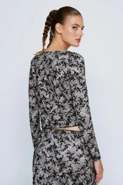 In bloom. Feel feminine in our tie front top, with a cute floral print, a flattering straight fit, and a flirty open design. Pairs well with the matching maxi skirt for an interseasonal look that is perfect for going from dinner dates to happy hour.