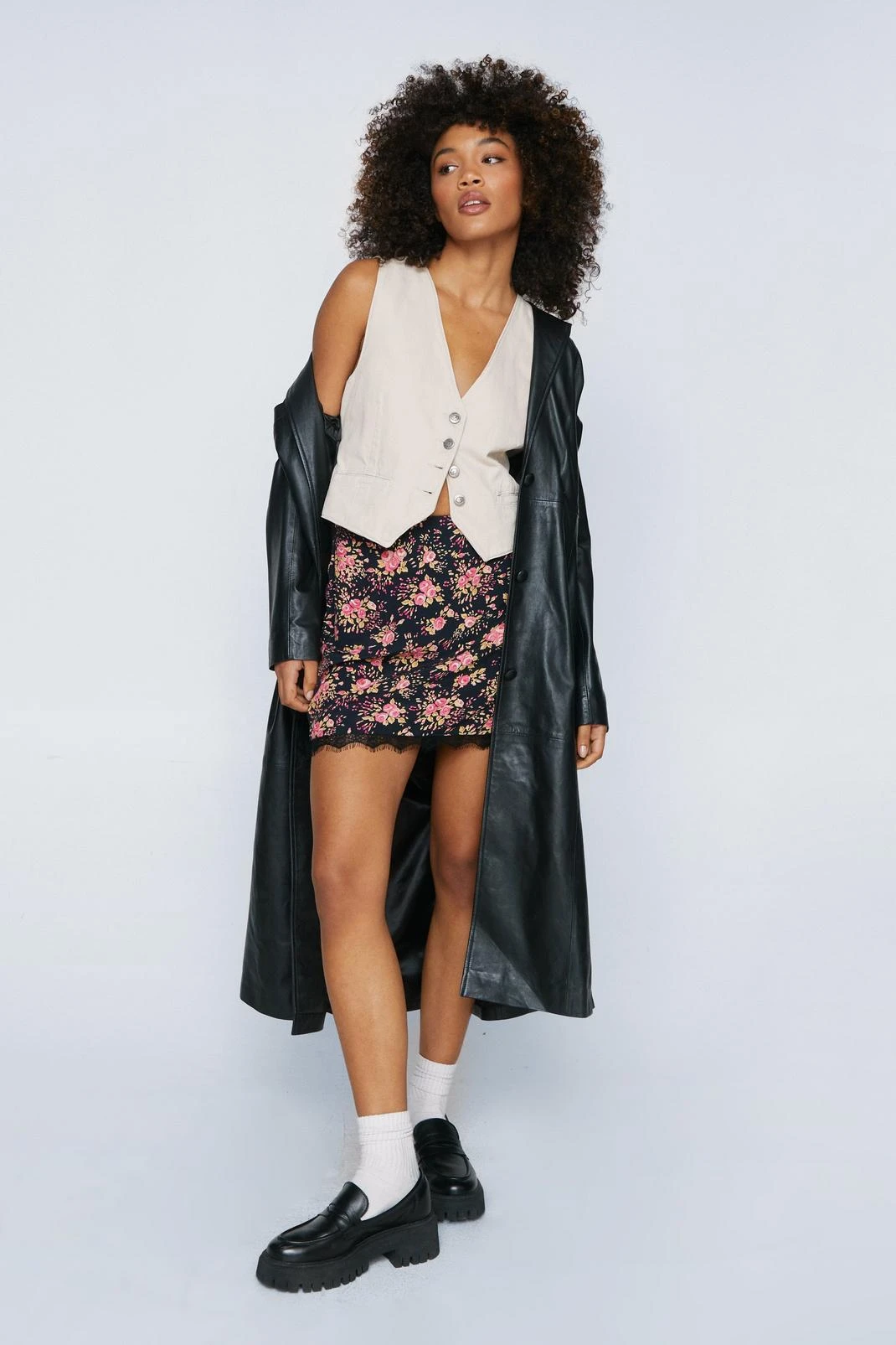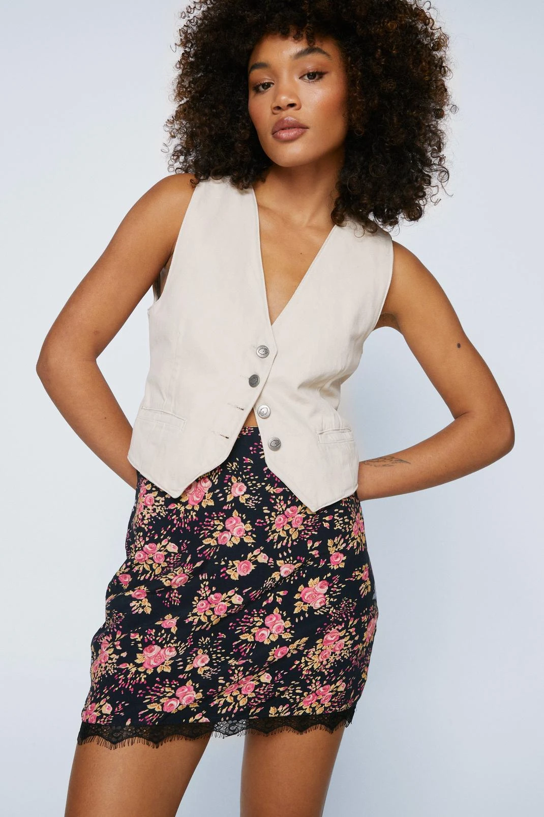Let your legs out. Feel feminine in our mini skirt, with a cute floral print and lace trim, an ultra flattering bodycon fit, and a comfortable high waistline. Pairs well with a crop top or corset top for an instant evening look, perfect for dinner dates, dancefloors, and drinks.