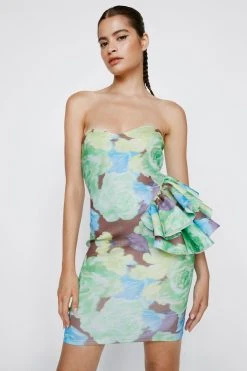 - Floral Print Structured Ruffle Mini Dress
